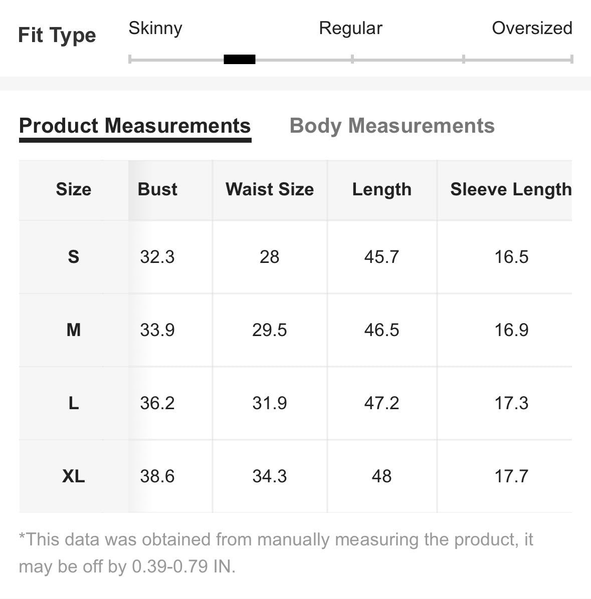Swipe to view the size chart.