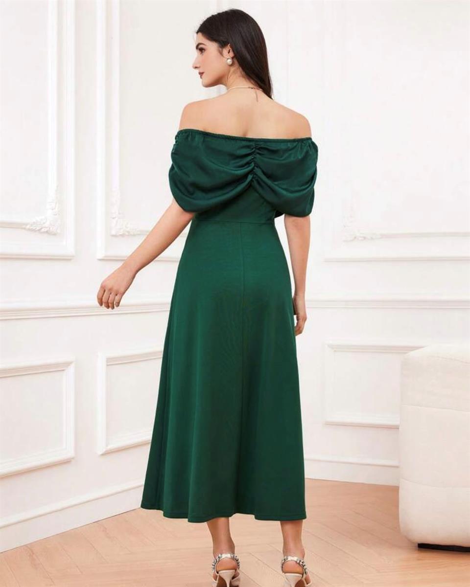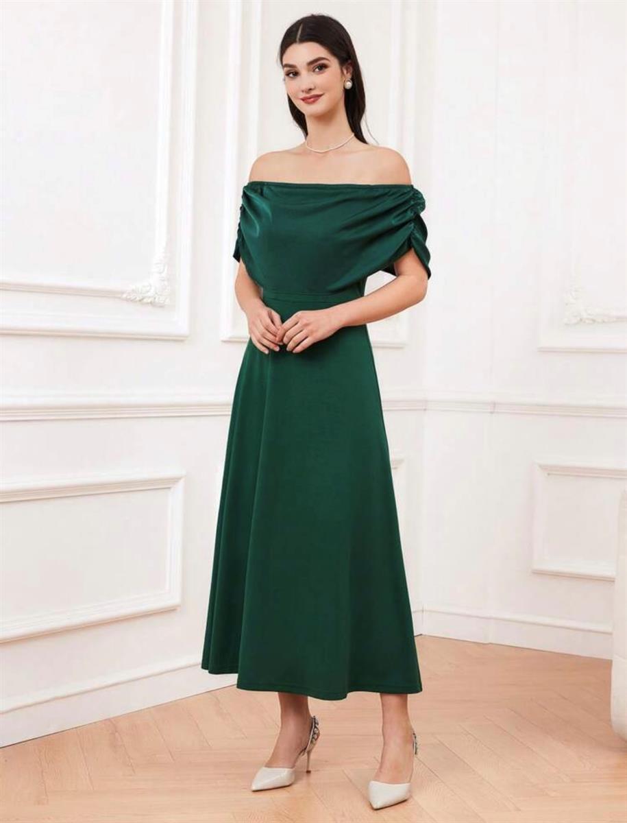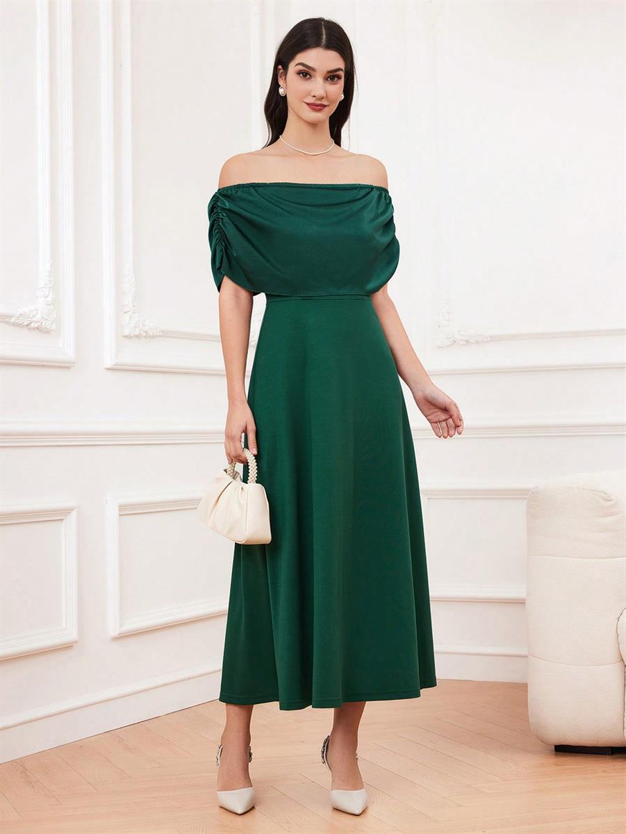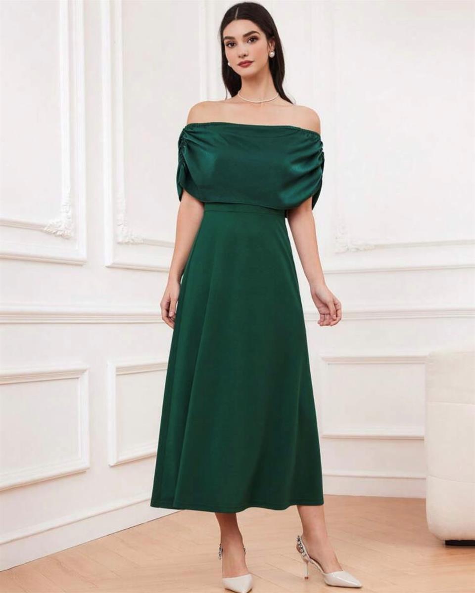 SHEIN emerald green off shoulder pleated dress