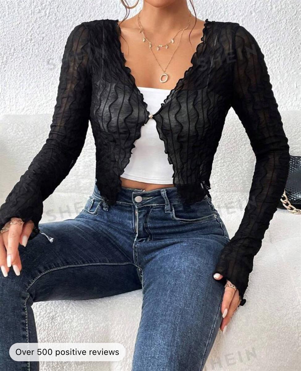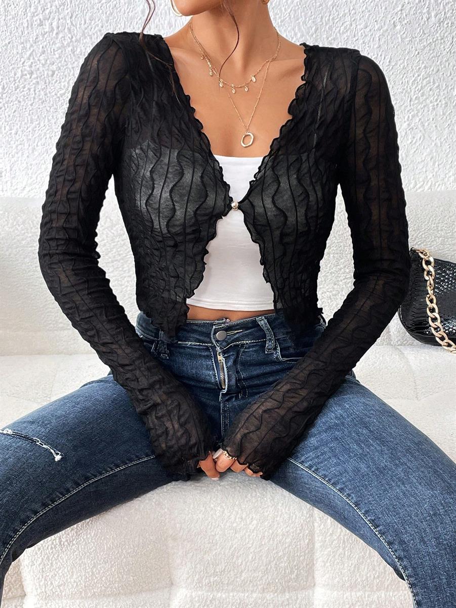 Button, Lettuce Trim, Sheer Regular Sleeve