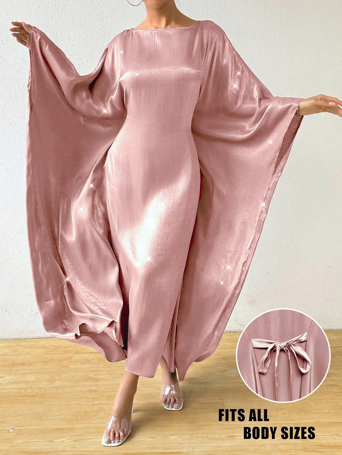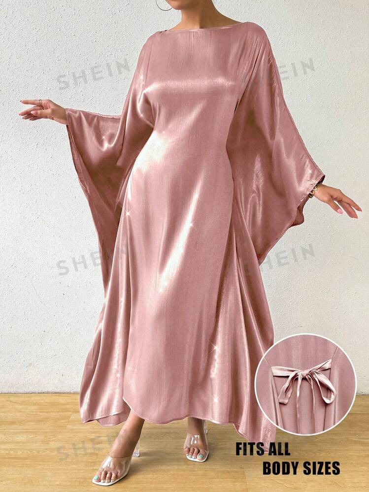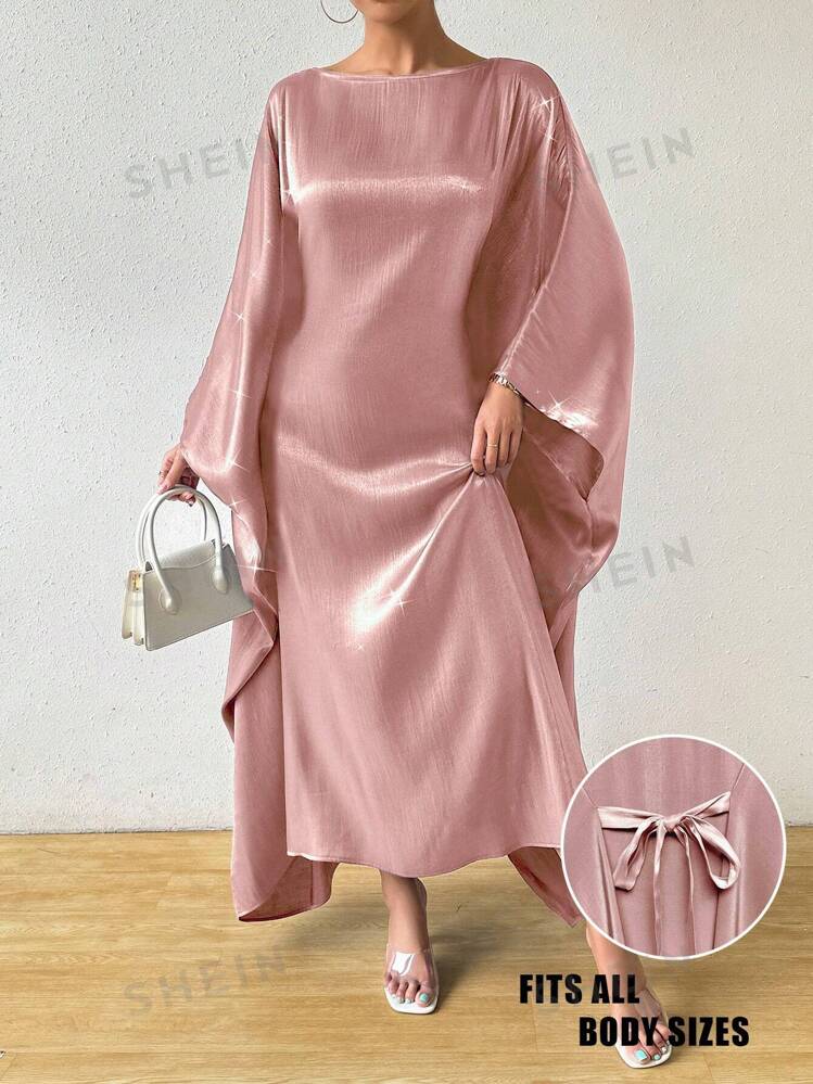 SHEIN Raffinéa Women Round Neck Batwing Sleeve Rose Pink Dress